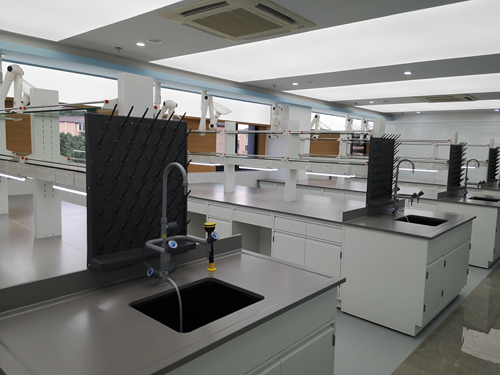 3.活動背板:中央臺中部(柜體背面)為設備夾層,柜子后部有可移動檔板,用于隱藏從地面預留或天花板引出功能柱到實驗臺面的水、電、氣管路,可在不用任何工具的情況下進入維修通道。
